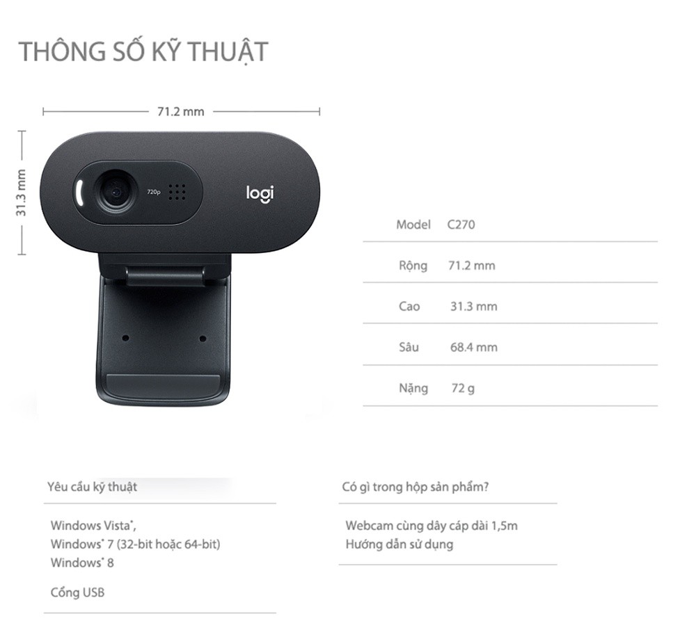Giới thiệu Webcam Logitech HD C270 (Đen)