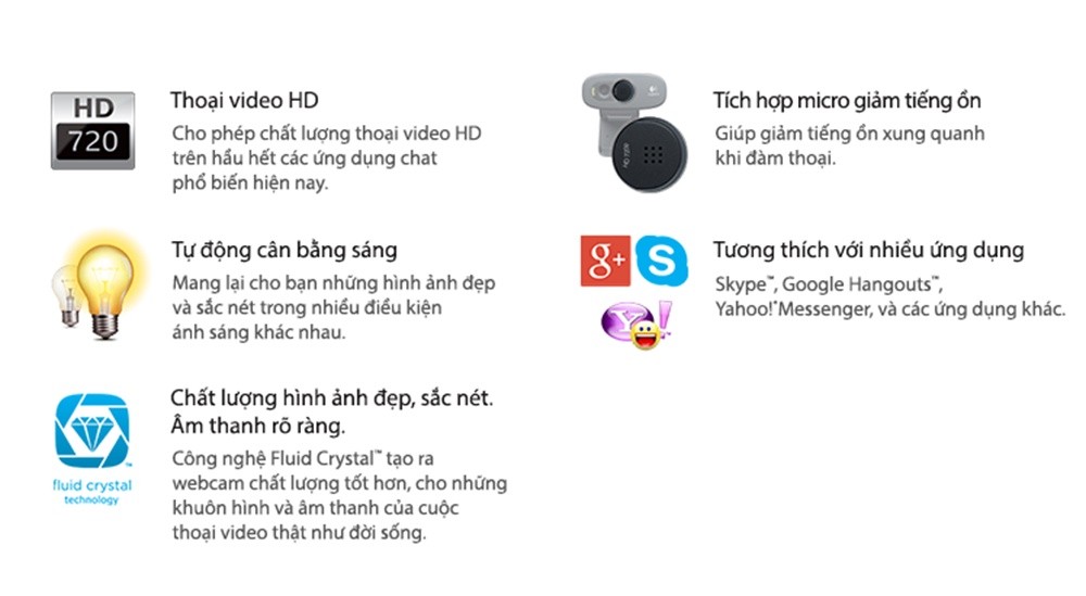 Công nghệ Tinh thể lỏng Logitech Fluid Crystal™. Đó là yếu tố khiến webcam của Logitech tốt hơn. Video mượt mà hơn, hình ảnh sắc nét hơn, màu sắc phong phú hơn và âm thanh rõ ràng hơn trong điều kiện thực tế.